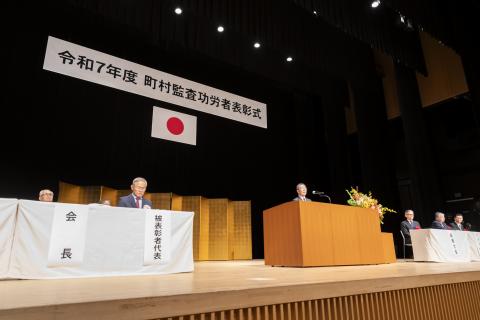 また、研修会に先立ち、令和7年度町村監査功労者表彰式が行われ、全国で監査委員72人、監査事務職
